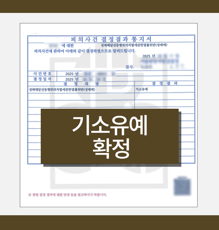 그 결과 사건은 아청법이 아닌 일반 성매매 사건으로 정리되었고, 초범·우발성·재범 가능성 등을 종합적으로 소명하여 최종적으로 기소유예 처분을 받을 수 있었습니다.