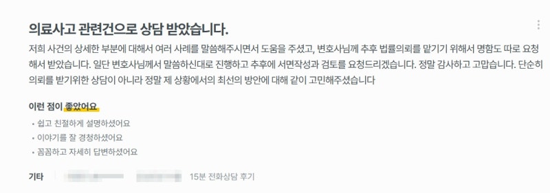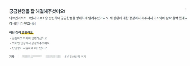 저희는 의사 출신 변호사가 사건을 면밀히 검토하여 법률조력을 드리고 있으니 '내 상황을 자세히 알고 싶다'면 연락주셨으면 하는데요.