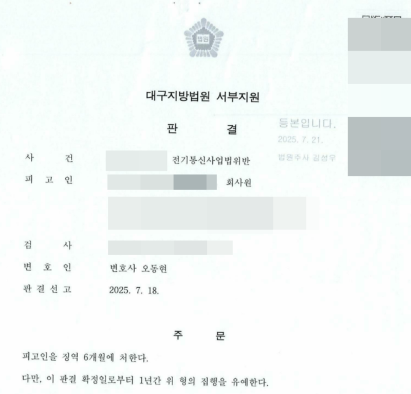 전기통신사업법위반 집행유예 선처 받은 사례