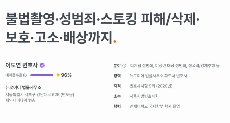 뉴로이어 법률사무소 이도연 파트너변호사입니다.