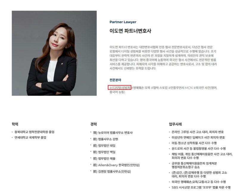 뉴로이어 법률사무소의 이도연 파트너변호사님입니다.
