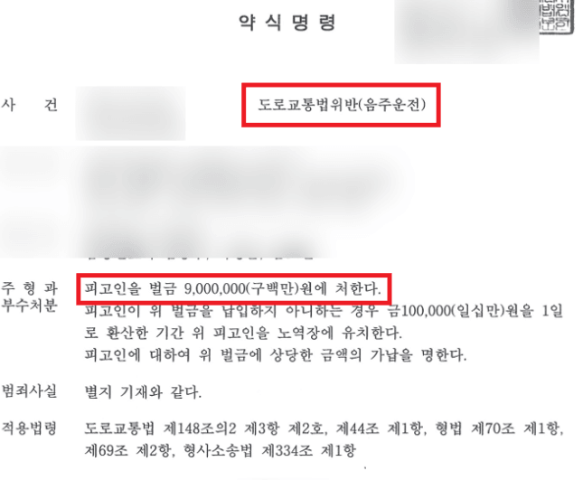도로교통법에 따르면, 혈중알코올농도 0.08%~0.2% 구간은 500만 원 이상 1,000만 원 이하의 벌금형이 규정되어 있습니다.