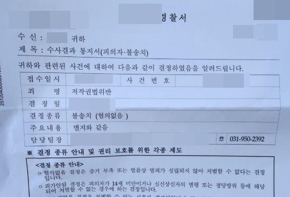 3. 최종 결과 : 수사기관의 긍정적인 공감을 이끌어내어 리셀러 저작권법 위반 불송치 처분 확정