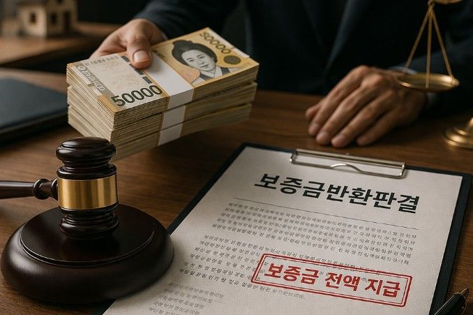 법원은 의뢰인의 주장을 전면 인용하여 보증금 전액과 지연이자 지급 판결을 선고했습니다. 가집행선고가 붙어 임대인이 항소하더라도 즉시 강제집행이 가능한 상태가 되었습니다.