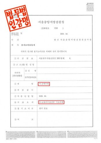 ◻ 검찰의 처분결과