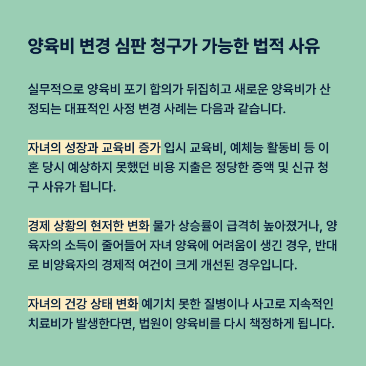 양육비 변경 심판 청구가 가능한 법적 사유