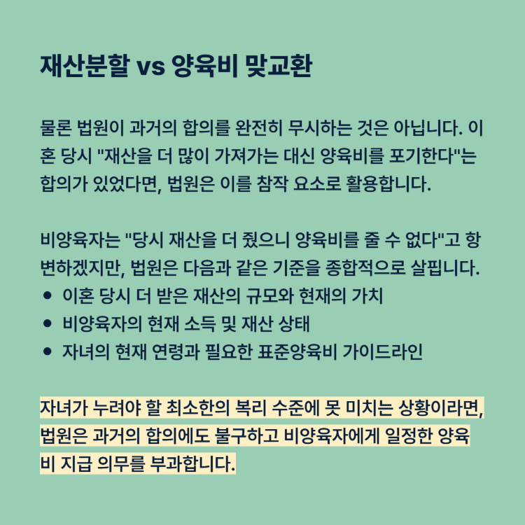 재산분할 vs 양육비 맞교환 합의의 실무적 판단