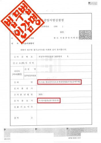 의정부지방검찰청은 이 사건에 대해 다음과 같은 사유로 불기소 결정을 하였습니다.