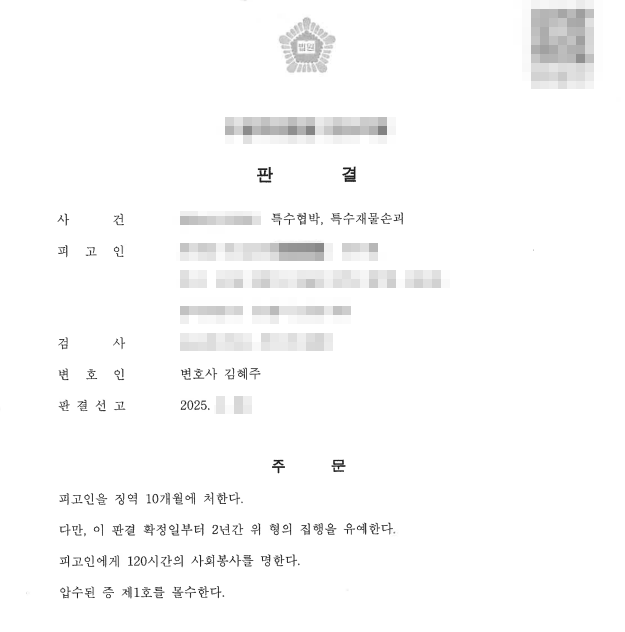[형사 전문] 특수협박·특수재물손괴, 실형 위기에서 집행유예를 이끌어내는 변론의 핵심