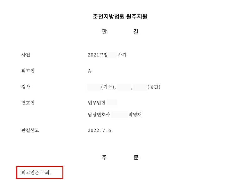 ⑤판결 : 법원은 인증 설명이 다소 모호하더라도 허위 기망으로 단정하기 어렵고, 설령 일부 오인이 있었다 하더라도 처분행위와의 인과관계를 인정하기 부족하다고 보아 범죄의 증명이 없다고 판단하였습니다. 이에 따라 의뢰인에게 무죄가 선고되었습니다.
