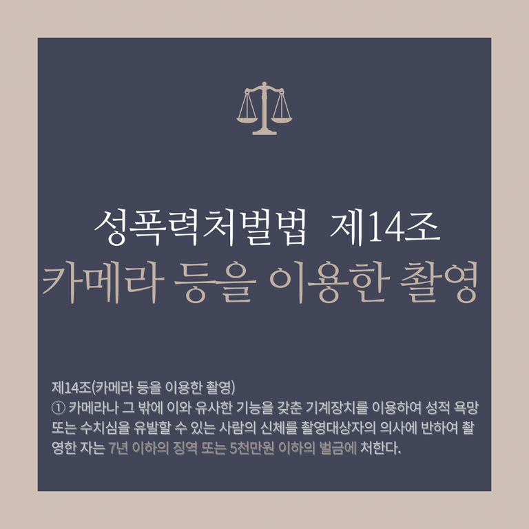 ① 카메라나 그 밖에 이와 유사한 기능을 갖춘 기계장치를 이용하여 성적 욕망 또는 수치심을 유발할 수 있는 사람의 신체를 촬영대상자의 의사에 반하여 촬영한 자는 7년 이하의 징역 또는 5천만원 이하의 벌금에 처한다.