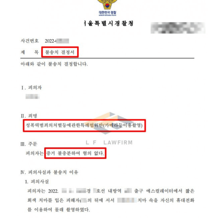 이처럼 사건의 구조를 어떻게 설계하느냐에 따라 불송치 여부가 갈리는 경우가 적지 않습니다.