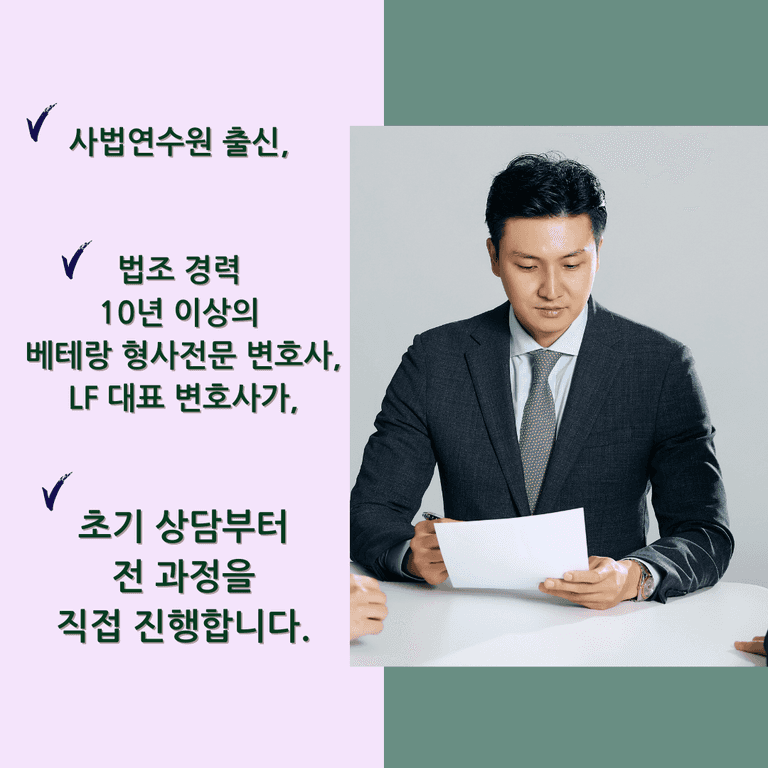 의뢰인과 같이 의도치 않게 형사 범죄 사건에 연루돼 그를 최선으로, 더불어 조속히 해결하고자 한다면, 관련 사건 해결 경험이 풍부한 베테랑 형사전문 법률대리인의 도움을 받는 것이 보다 더 유리할 수 있을 것입니다.