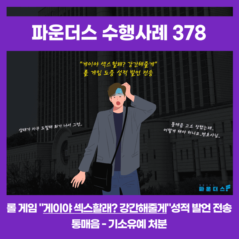 ![[통매음 기소유예]롤 게임 중“게이야 섹스할래?강간해줄게” 발언](/_next/image?url=https%3A%2F%2Fd2ai3ajp99ywjy.cloudfront.net%2Fuploads%2Ftitleimage%2Foriginal%2F5c9ddcaf01c5edf7776c8683-original.jpg&w=3840&q=75)