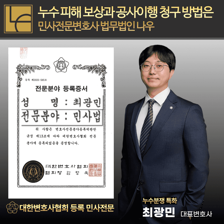 안녕하세요, 울산민사전문변호사 누수분쟁변호사 법무법인 나우 최광민 대표변호사입니다.