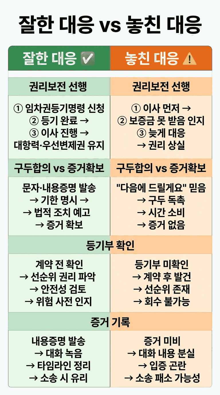임대인의 자산 은닉 우려가 크거나 시간 지체가 치명적인 경우에는 가압류 등 보전처분 검토가 함께 들어갈 수 있습니다. 다만 이는 개별 사실관계에 따라 달라집니다.