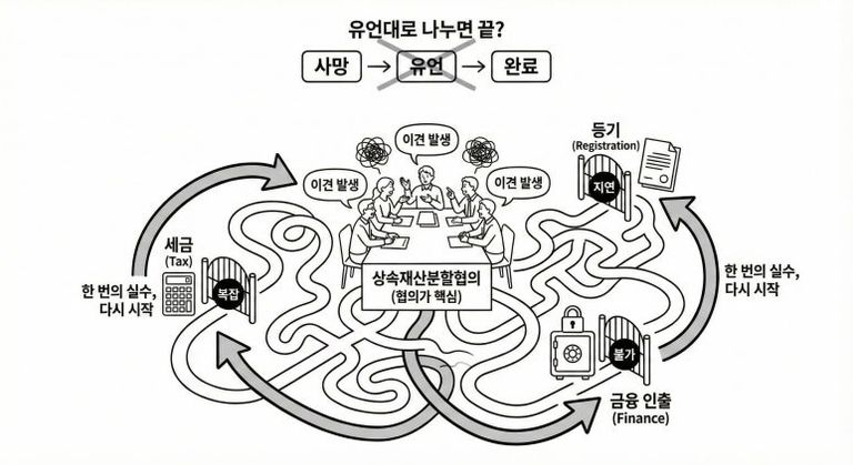 협의는 자율적으로 할 수 있지만, 그만큼 한 번의 실수로 분쟁이 길어지거나, 세금·등기·금융 인출 단계에서 다시 처음으로 돌아가는 일이 자주 발생합니다.