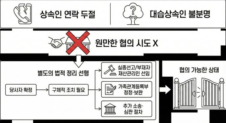 3. 연락두절 상속인은 '설득'이 아니라, '절차'의 문제입니다.