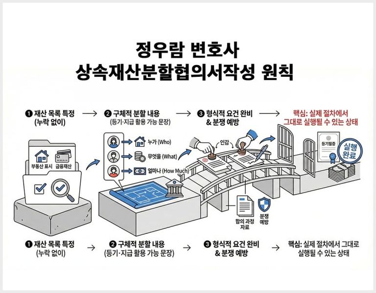정우람 변호사는 상속재산분할 사건을 수행하면서, 협의가 깨지는 지점이 대체로 정해져 있다는 점을 반복적으로 확인해 왔습니다.