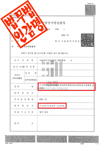 ○ 서울북부보호관찰소가 실시하는 성폭력사범 교육의 이수를 조건으로 기소를 유예한다.