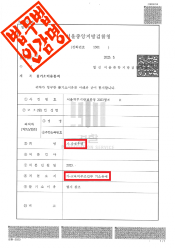 ○ 성폭력 재범방지교육 이수를 조건으로 기소를 유예한다.