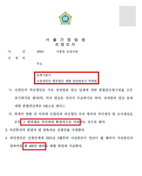 — 재산분할 기여도 100%, 양육비 월 400만 원, 단 2개월 만의 협상 종결
