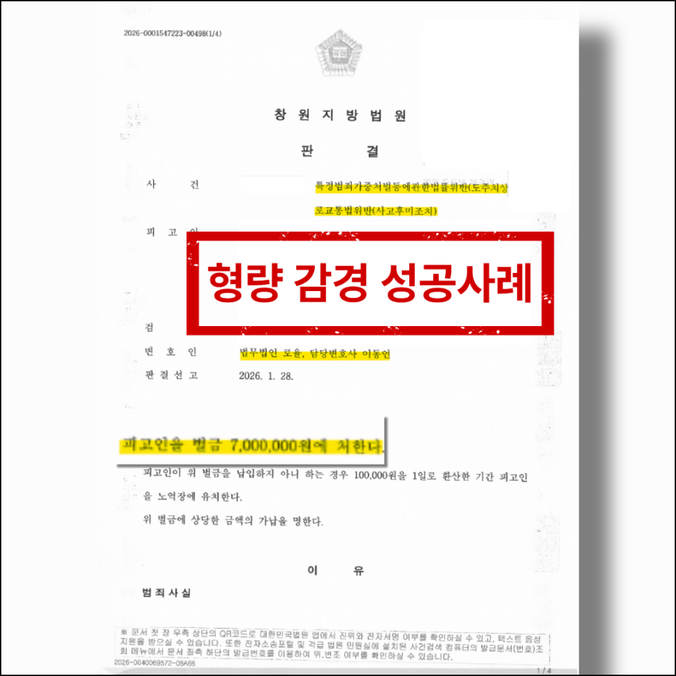 최종적으로 벌금 700만 원이라는 선처를 이끌어낼 수 있었던 사건이였습니다.