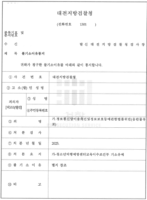 대전지방검찰청은 다음과 같은 이유로 기소유예(청소년비행예방센터 교육 이수 조건부) 결정을 내렸습니다.