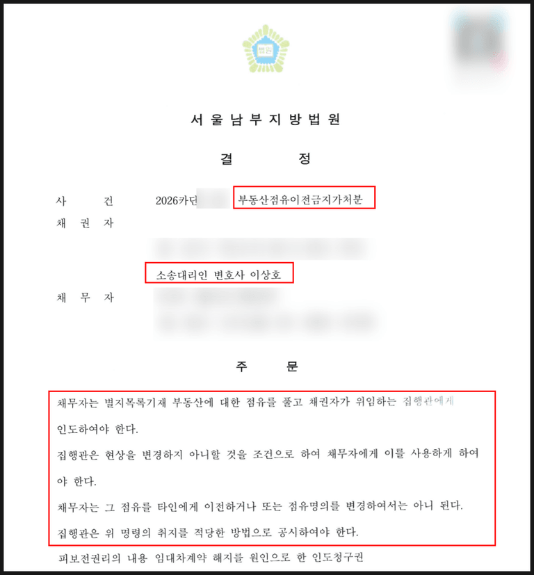 👉 점유이전금지가처분을 선행하는 전략을 선택했습니다.