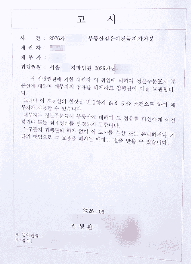 점유이전금지가처분을 선제적으로 진행하고, 실제 집행까지 완료한 사례입니다.
