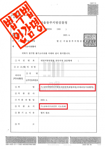 형사전문변호사의 동석 하에 진행된 조사에서 의뢰인이 자신의 잘못을 진심으로 인정하고 반성하도록 조력하였으며,
