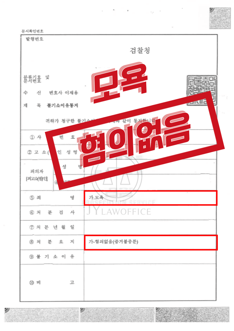 수사기관은 본 변호인의 주장을 받아들여 의뢰인에게 혐의없음의 처분을 내렸고, 의뢰인은 무사히 일상으로 복귀할 수 있었습니다.