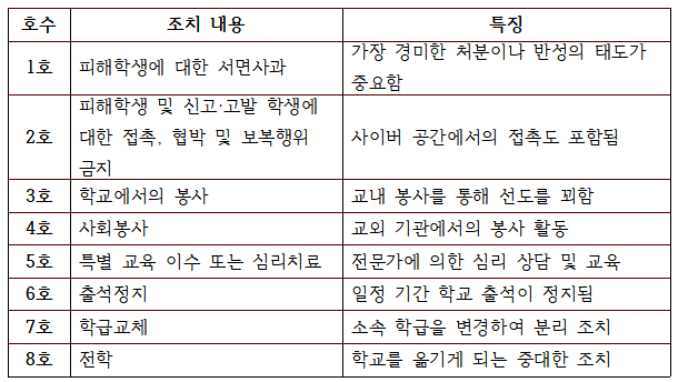 2. 초등학교 학폭 처분 단계별 조치 내용 (1호~8호)