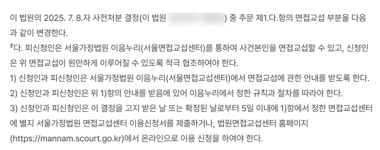 1. 소송/조정 단계에서 명시: "면접교섭센터를 통해 실시한다"는 내용을 조정조서나 판결문에 반드시 넣어야 합니다. 특히 '감독 면접'이 필요한 사유를 법리적으로 잘 설득해야 합니다.