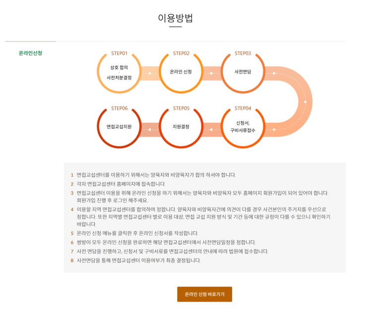 중립적 인도 서비스 (전달만 도움): 장소가 마땅치 않거나 주소 노출을 원치 않을 때, 혹은 얼굴만 보면 싸우게 될 때 이용합니다. 센터에서 아이만 주고받고 만남은 외부에서 진행합니다.