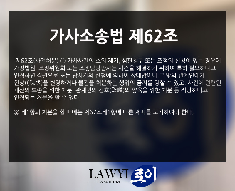 특히 아이가 있음에도 경제력이 부족한 여성의 경우 이혼을 많이 망설이게 됩니다. 이와 같은 문제점을 해결하기 위하여 가사소송법 제62조는 사전처분이라고 하여 임시양육자지정으로 소송 기간 중에 아이 양육에 대한 문제점을 해결하고 임시양육비 결정으로 소송기간 중 비용에 관한 문제를 해결하도록 하고 있습니다.