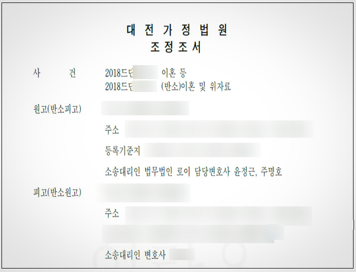 특히 이혼 소송은 일반 민사소송과 다르게 대부분은 조정절차를 거치게 됩니다. 즉 가정법원은 조정기일을 잡아서 부부 쌍방을 불러놓고 조정위원과 함께 조정을 우선적으로 시키기 때문에, 이때 얼마 정확한 사실관계와 법리를 가지고 조정에 임하느냐가 매우 중요합니다.