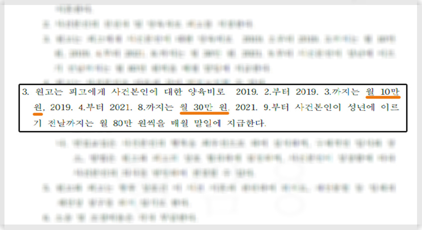 그러나 이혼 조정의 장점은 의뢰인의 사정에 따라 아래와 같이 양육비를 매우 적은 액수로도 책정할 수 있다는 점입니다.
