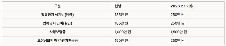- 2026년 2월 1일 이후 접수된 압류 사건부터 적용