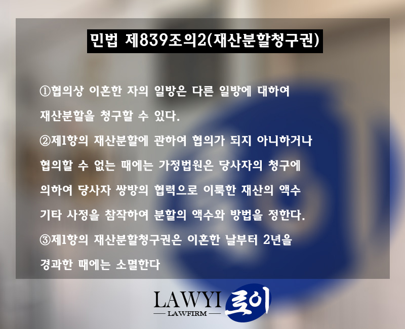 협의 이혼 시 주의하실 점은 협의 이혼이 이루어진 경우라고 하더라도 모든 것이 정리된 것이 아닙니다. 즉, 협의 이혼이 된 후라고 하더라도 상대방은 민법 제839조의 2에 의하여 협의 이혼 후 2년 내에 재산분할을 청구할 수 있고, 유책 배우자나 상간자에 대하여 위자료 청구할 수 있습니다.