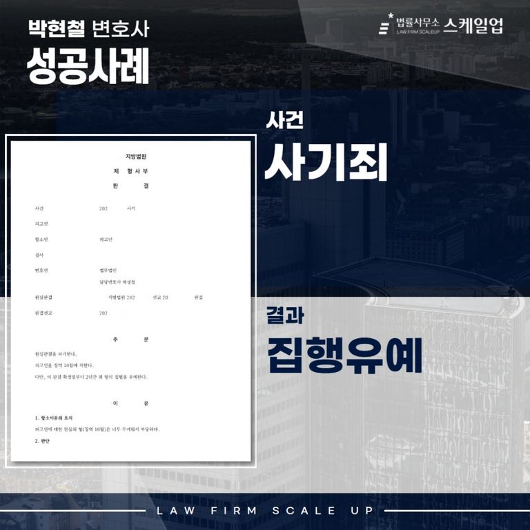 안녕하세요. 법률사무소 스케일업, “사기 전문 박현철 변호사”입니다.