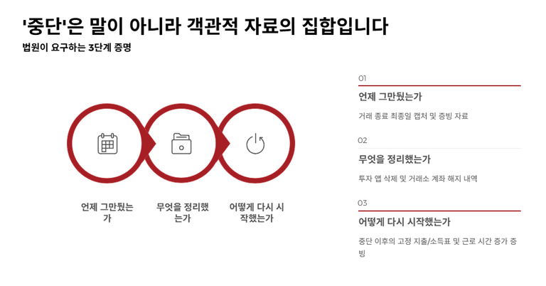 투자를 하는 동안에도 공과금, 월세, 자녀 교육비 등 필수 생활비가 꾸준히 정상적으로 지출되었다는 점을 보여줘야 합니다. 즉, "내 삶을 파괴하면서 투자한 것이 아니라, 가용 가능한 범위 내에서의 실패였다"는 점을 데이터로 입증하는 과정이 필요합니다.