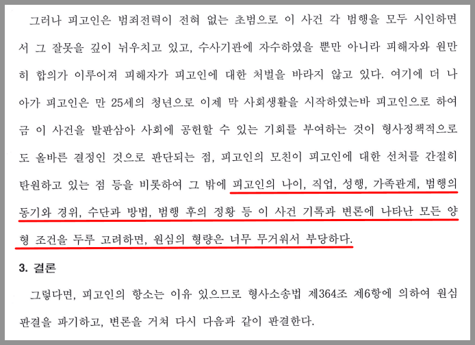 반대로 재판부의 마음을 움직이지 못하면 항소가 기각될 것이고, 이 경우 판결문에는 앞서 언급한 대법원 판례가 근거로 인용됩니다. 이는 항소를 기각하는 가장 간단하면서도 명료한 논거가 될 수 있기 때문입니다.