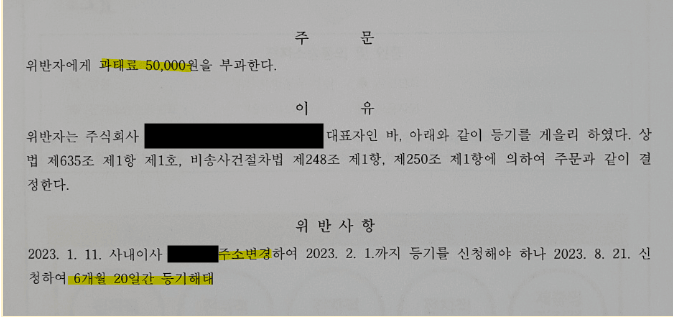 3. 임원 변경등기 기한 넘기면 과태료 얼마?