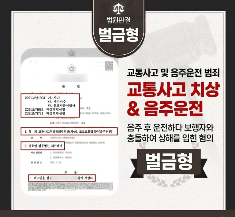 결과적으로 도주치상은 벗어냈고, 음주운전 부분만 벌금형으로 최소화하여 일상 복귀가 가능했습니다.