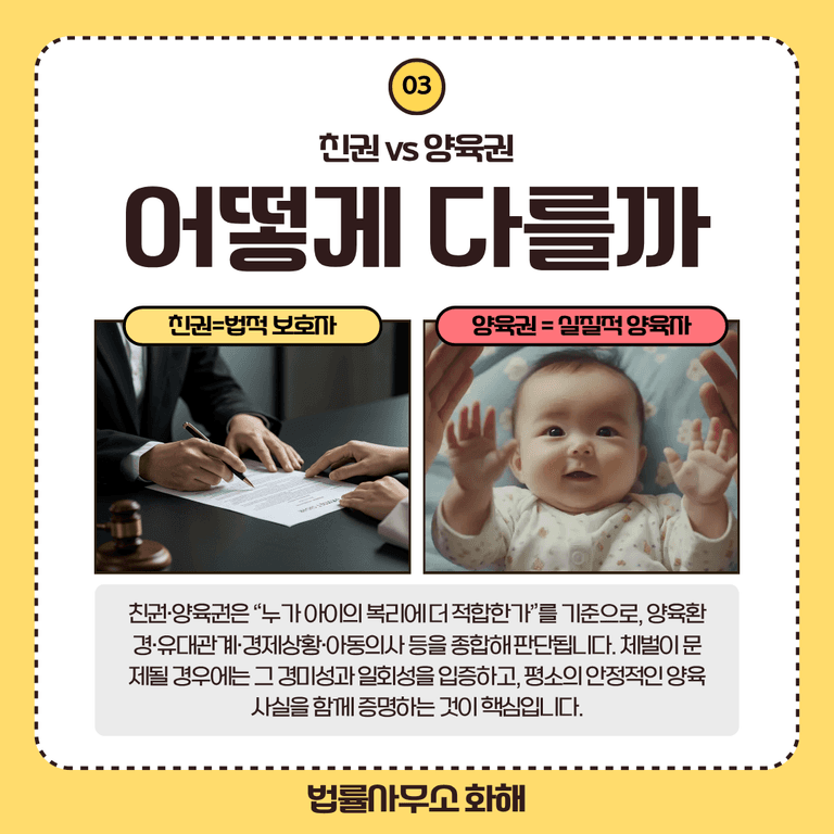 타이밍도 매우 중요합니다. 학대 정황이 의심된다면 면접교섭 이후 즉시 움직여야 합니다. 증거는 시간이 지날수록 희미해지고, 상대방도 법적 대응을 준비하기 때문입니다. 반대로 체벌로 인해 피의자 입장이 된 경우라면, 경찰 조사 이전부터 변호사의 조력을 받아 일관된 방어 논리를 구축하는 것이 친권·양육권 방어까지 이어지는 핵심 전략이 됩니다.