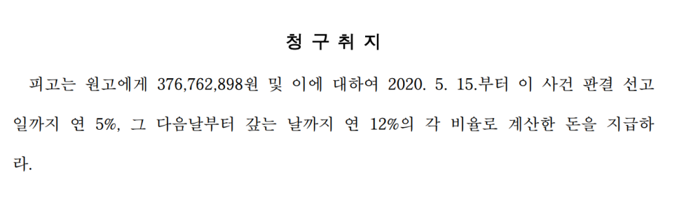 참고로 A씨가 청구한 손해배상액은 약 3억 7,600만원이었습니다
