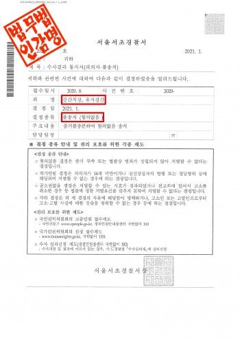 서울서초경찰서는 이 사건에 대해 다음과 같은 사유로 불송치 결정 처분을 하였습니다.