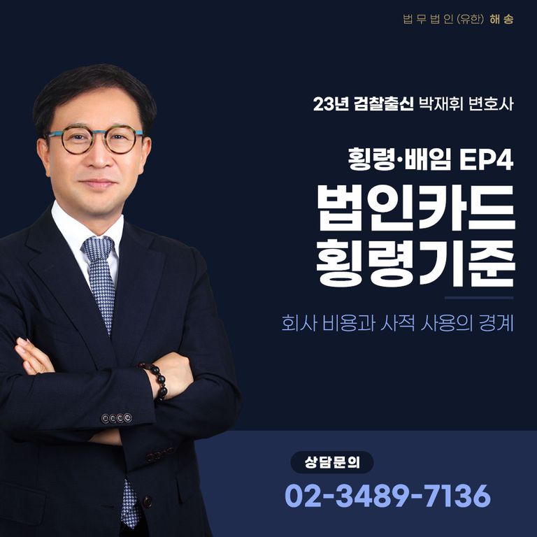 반대로 외형상 오해를 받기 쉬운 사용이라도 객관적 자료가 충분하다면 횡령으로 단정하기 어려운 사안도 분명히 존재합니다. 그래서 법인카드 사건은 감정적으로 대응하기보다 사용 내역 하나하나를 회사 운영 구조 속에서 설명할 수 있는지 차분히 점검하는 과정이 필요합니다.