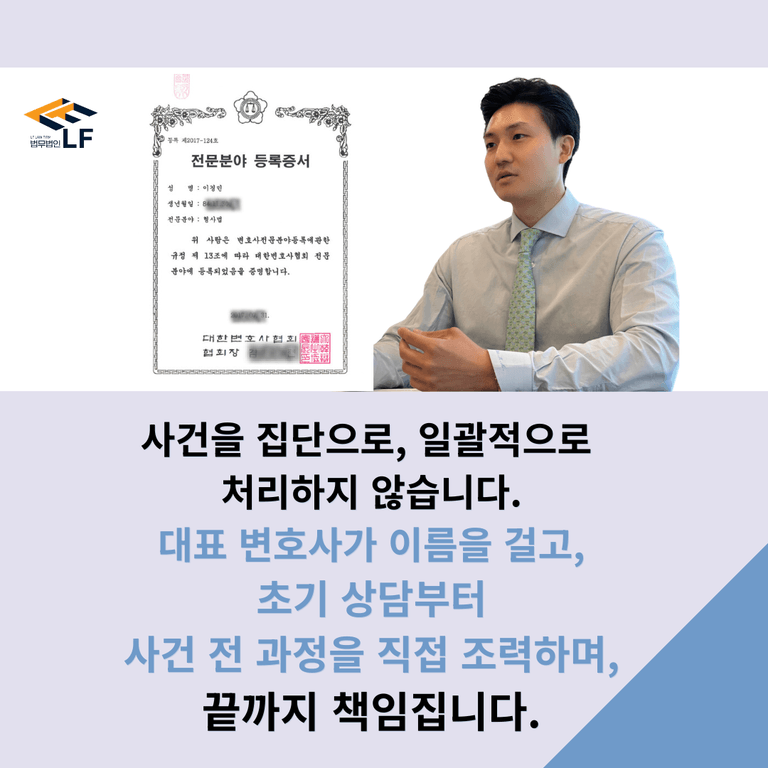 담당 변호인의 역량에 따라 사건 진행 과정 및 결과는 달라질 수 있습니다.